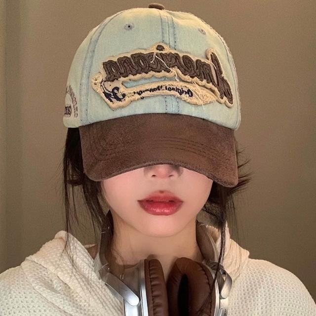 KT DADA美式復古 帽子 棒球帽 鴨舌帽 牛仔帽 女帽 女生帽子 小臉神器 老帽 遮陽帽 刺繡 甜酷風 拼色 百搭 ins風