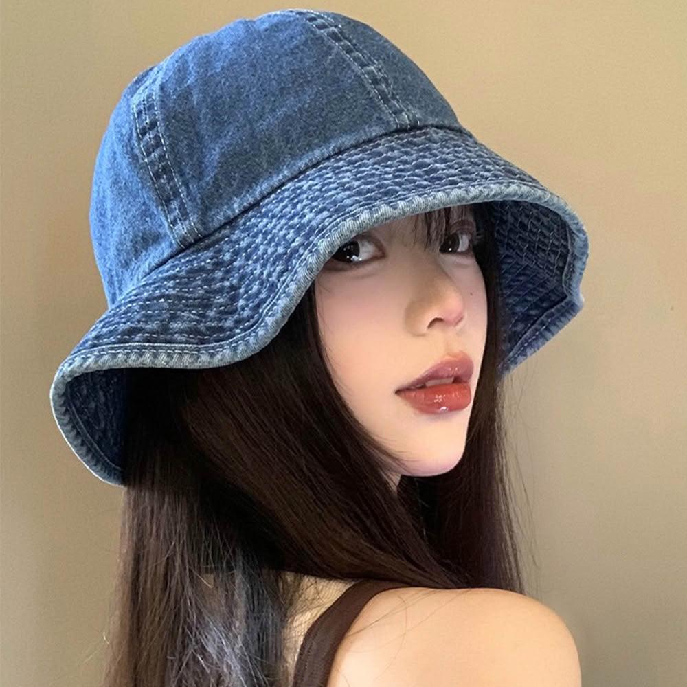 MoonDy漁夫帽 牛仔帽 帽子 女帽 牛仔漁夫帽 日系帽子 大頭圍 遮陽帽 防曬帽 百搭 女生帽子 甜酷 男女通用 顯臉小
