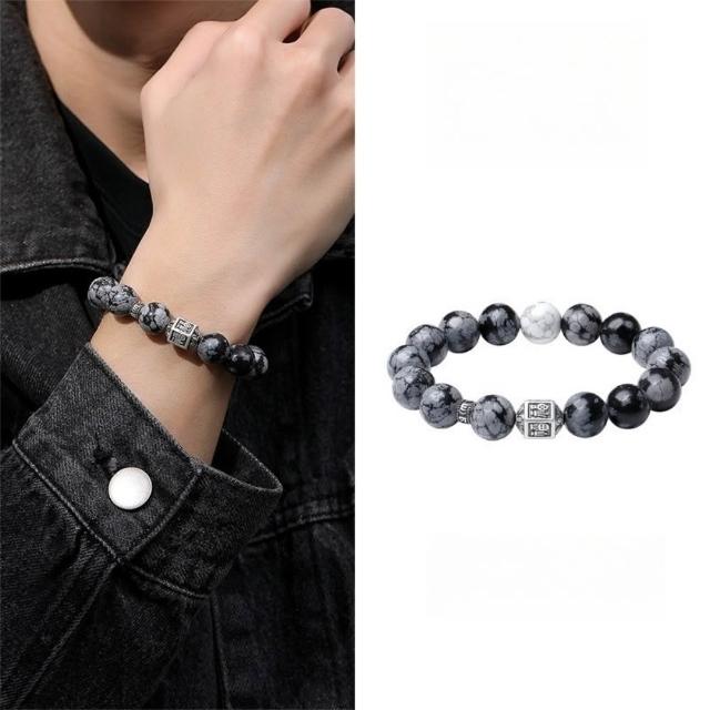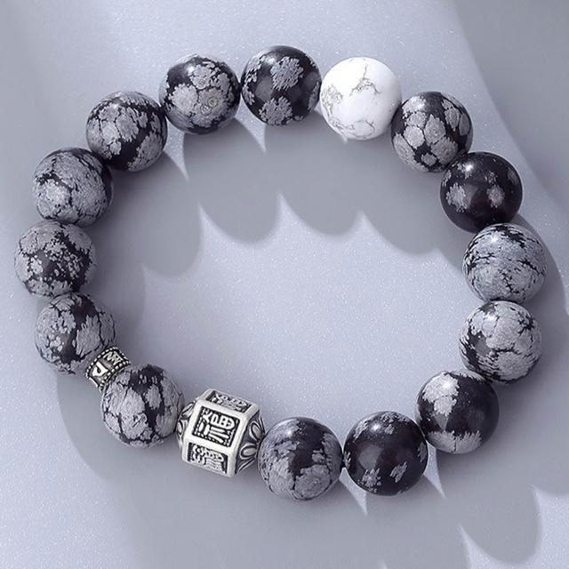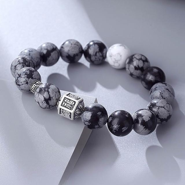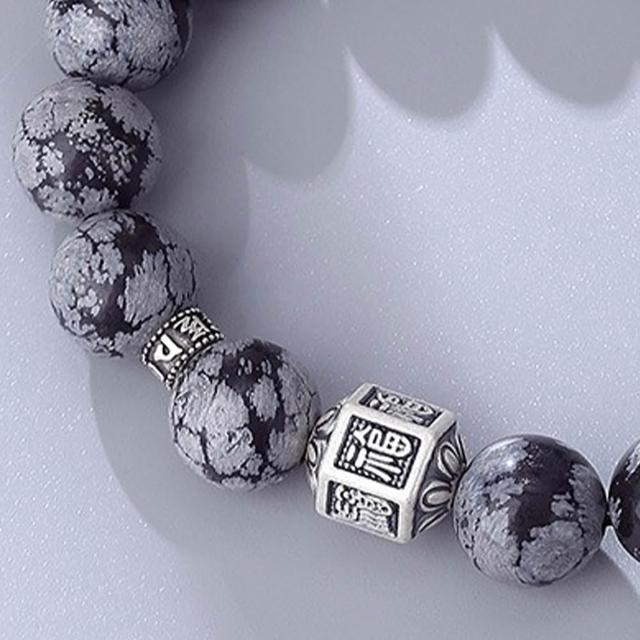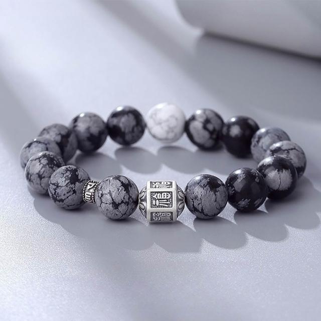 MoonDy手鍊 串珠手鍊 s999足銀 白松石手鍊 雪花曜石手鍊 飾品 串珠 水晶手鍊 純銀手鍊 男生手鍊 保平安 納福
