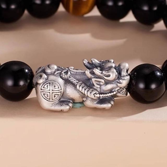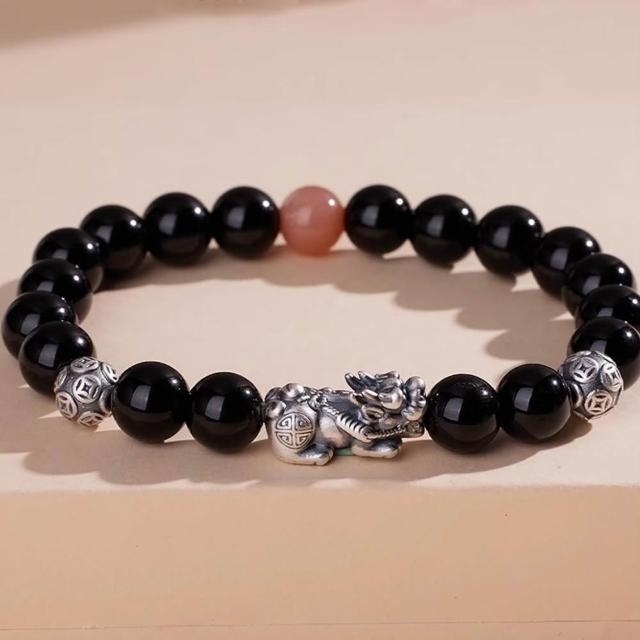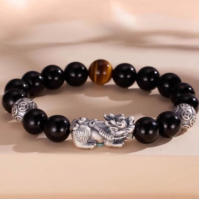 KT DADA水晶手串 純銀手鍊 貔貅手串 黑曜石 虎眼石 太陽石 保平安 招財納福 情侶手鍊 手鍊 串珠 飾品