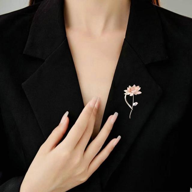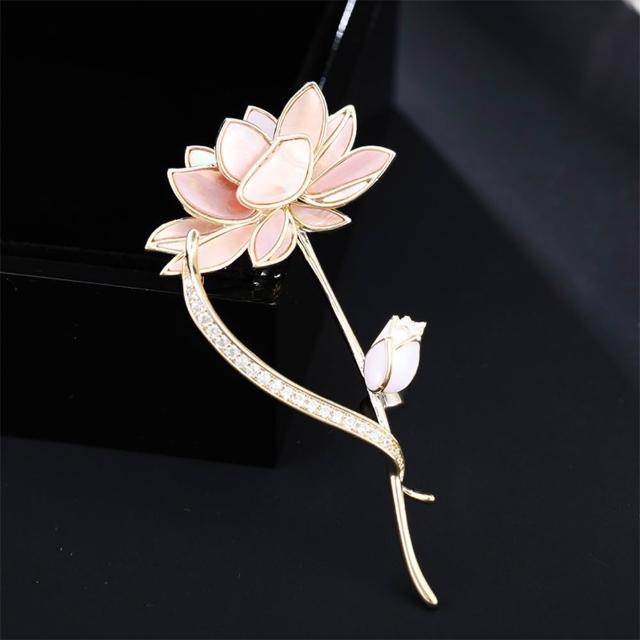 MoonDy飾品 胸針 別針 貝殼 鋯石 金屬別針 造型胸針 蓮花 胸花 別針扣 胸針扣 造型別針 配飾 穿搭配件