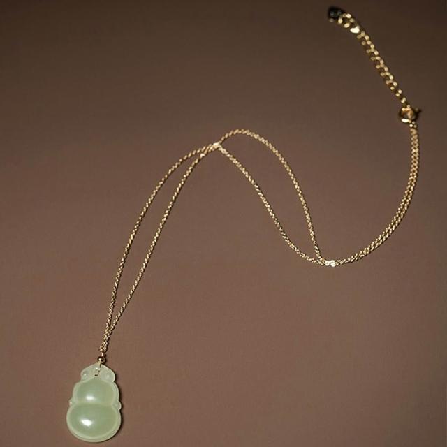 MoonDy和田玉項鍊 福祿葫蘆 葫蘆吊墜 項鍊 吊墜 鎖骨鍊 14K包金 百搭飾品