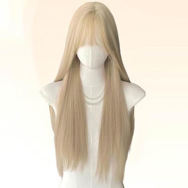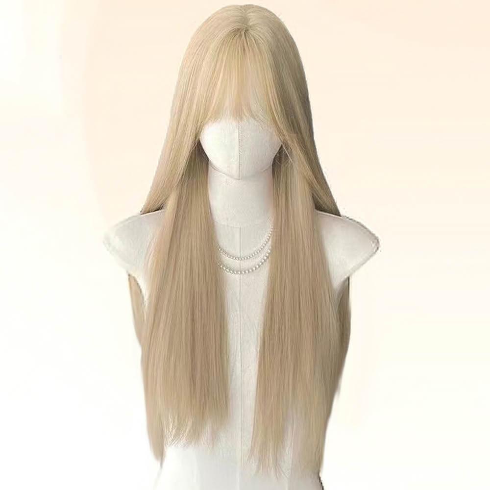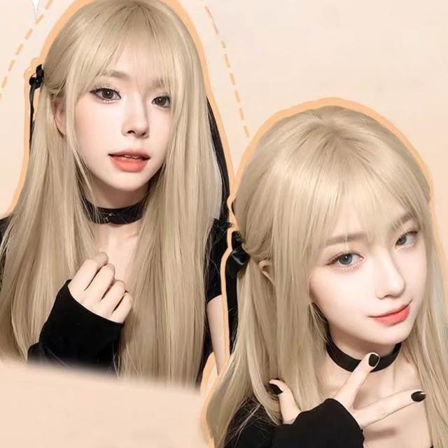 MoonDy女生假髮 模擬真髮 假髮套 COS用假髮 透氣 自然 假髮 金色假髮 長直髮 全頭套式 彌海砂同款