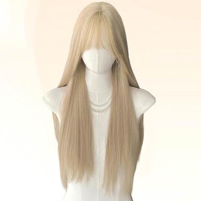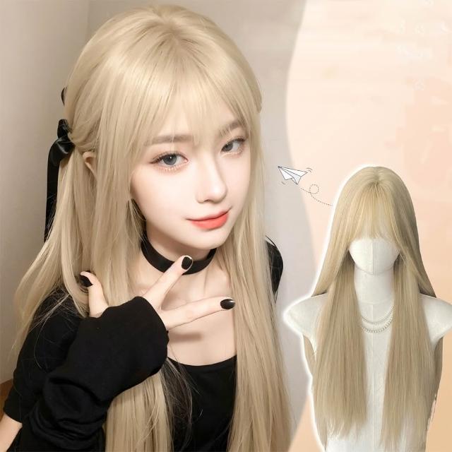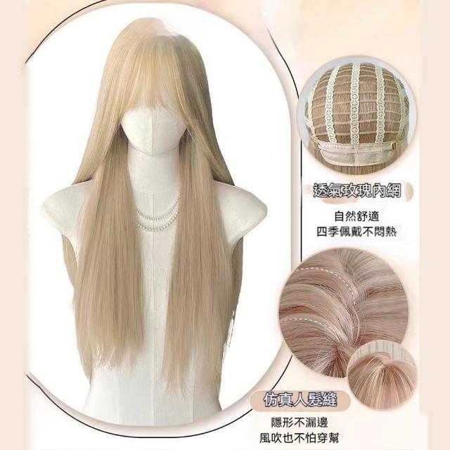 MoonDy女生假髮 模擬真髮 假髮套 COS用假髮 透氣 自然 假髮 金色假髮 長直髮 全頭套式 彌海砂同款