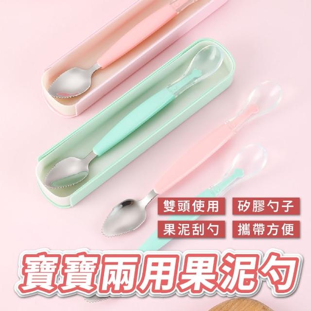 寶寶兩用果泥勺雙頭刮果泥湯匙 不鏽鋼刮泥勺 矽膠勺子 寶寶輔食勺