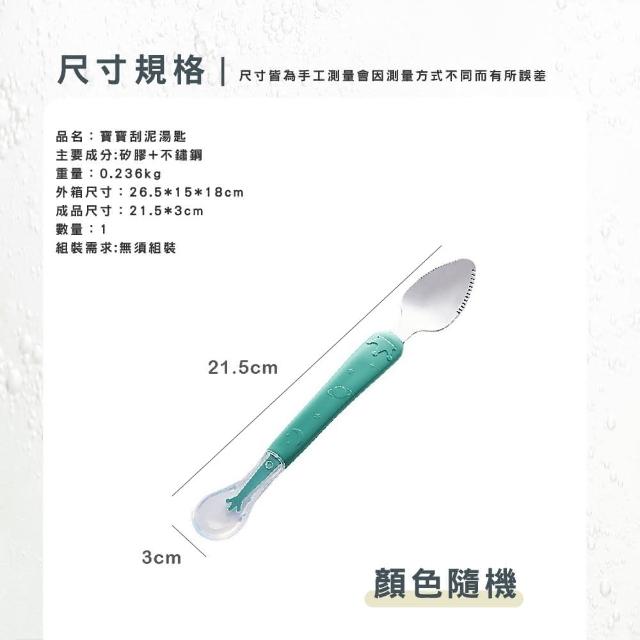 寶寶兩用果泥勺雙頭刮果泥湯匙 不鏽鋼刮泥勺 矽膠勺子 寶寶輔食勺