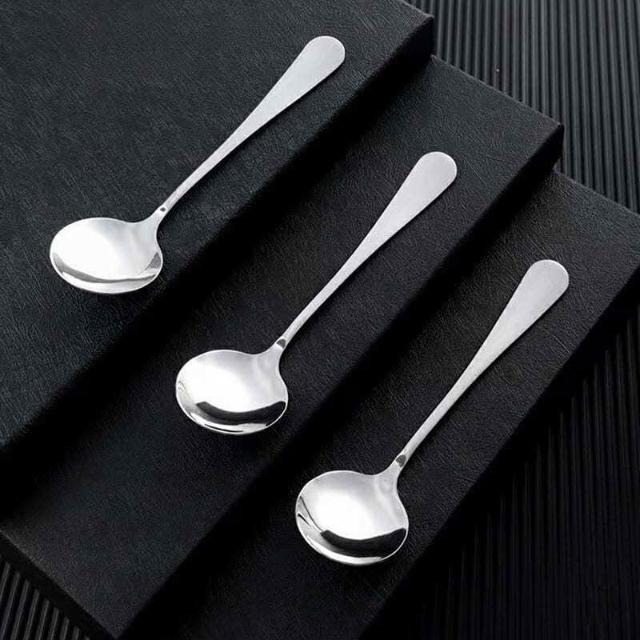 不鏽鋼吃飯勺 湯匙 家用餐具 勺子餐具組 簡約設計湯匙 光滑圓邊飯勺 便攜餐用湯匙吃飯勺
