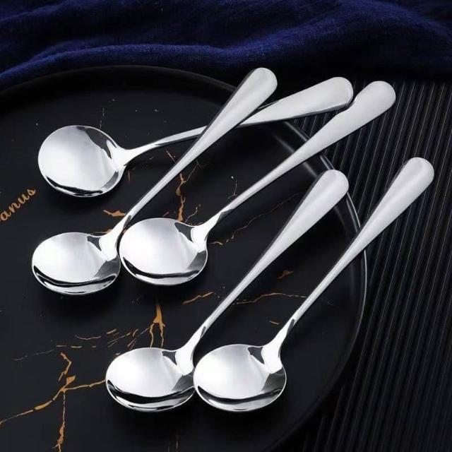 不鏽鋼吃飯勺 湯匙 家用餐具 勺子餐具組 簡約設計湯匙 光滑圓邊飯勺 便攜餐用湯匙吃飯勺