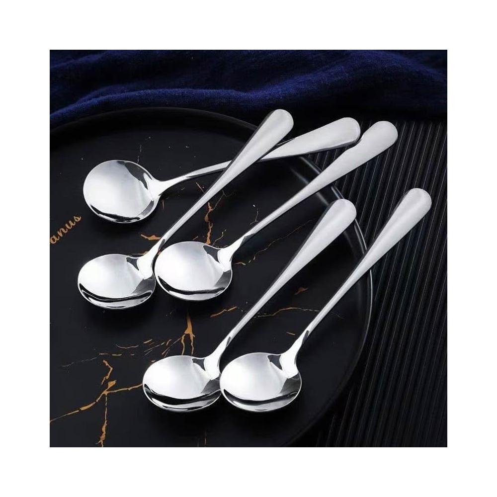 不鏽鋼吃飯勺 湯匙 家用餐具 勺子餐具組 簡約設計湯匙 光滑圓邊飯勺 便攜餐用湯匙吃飯勺