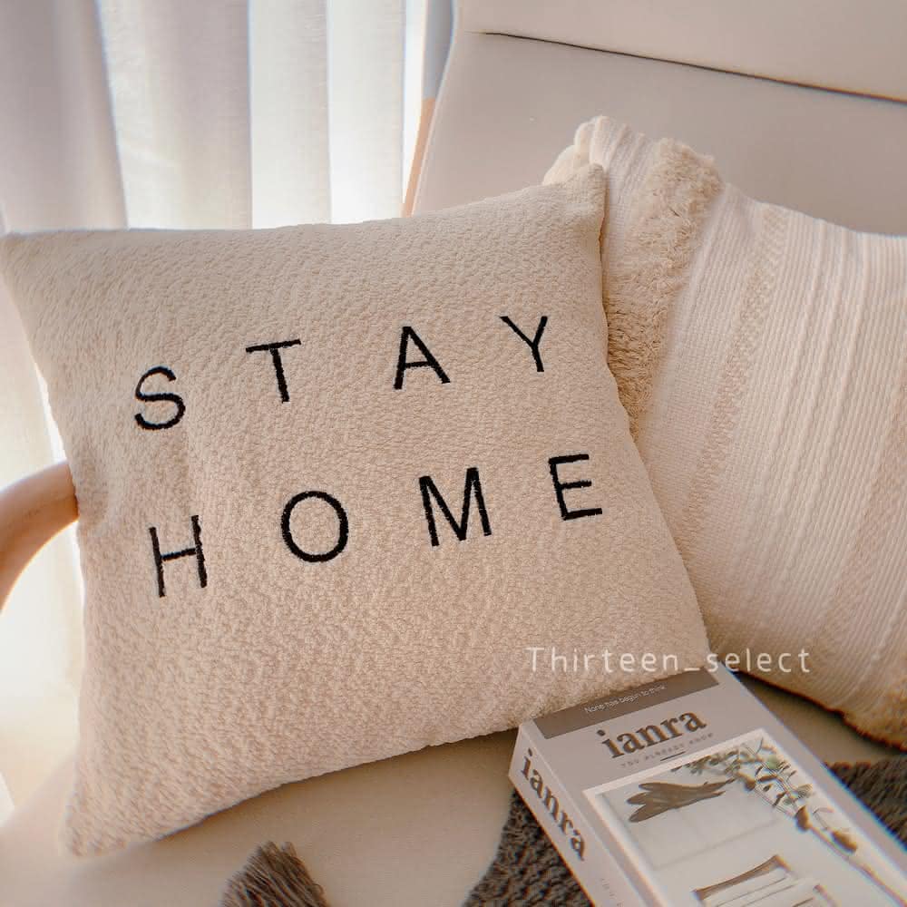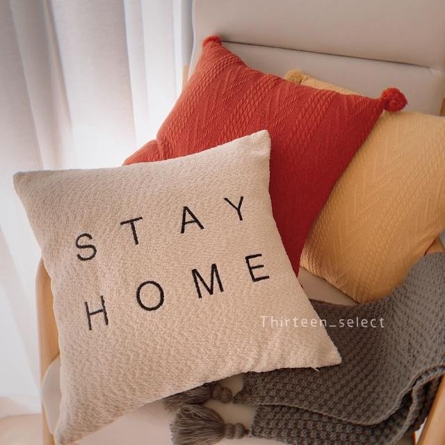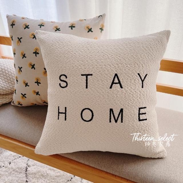 THiRTEEN 拾參家居Stay Home刺繡泰迪絨抱枕沙發靠枕 北歐Ins風 居家裝飾 軟裝佈置 租屋裝飾