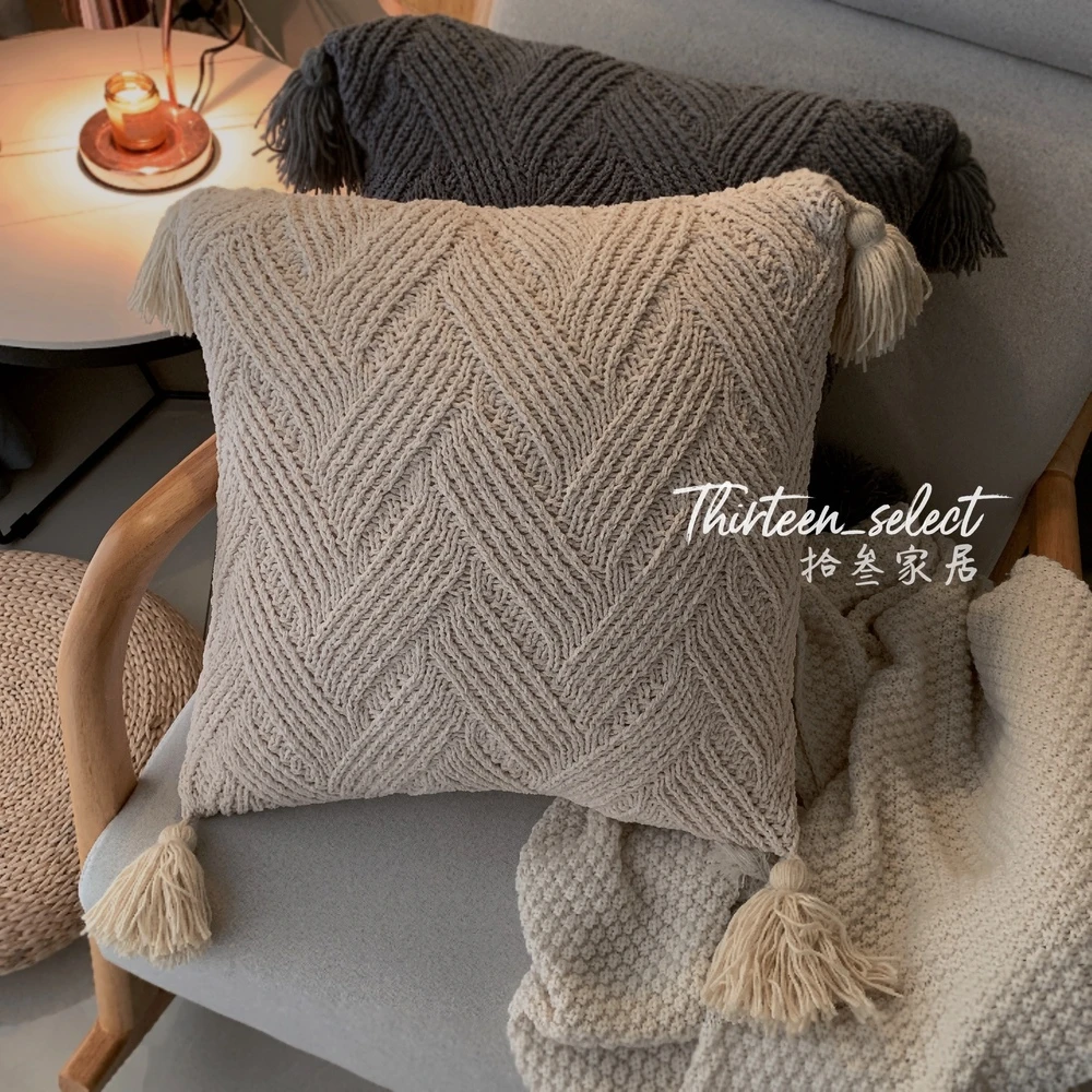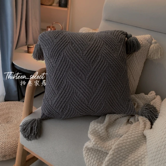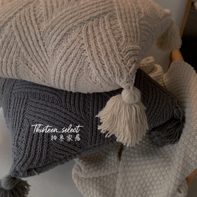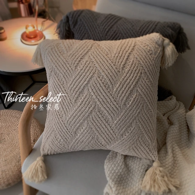 THiRTEEN 拾參家居侘寂風針織紋流蘇軟糯抱枕抱枕套 沙發靠枕 交換禮物 居家裝飾