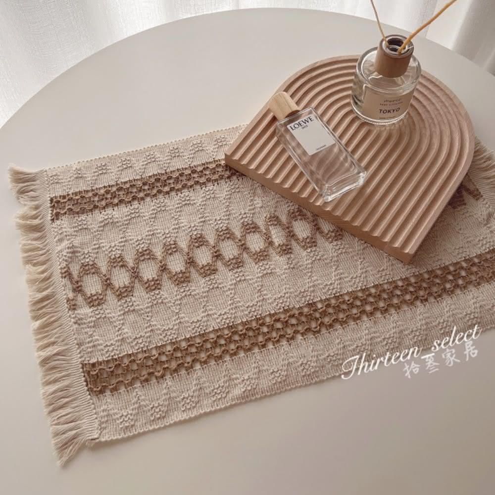 THiRTEEN 拾參家居流蘇棉麻方形餐墊裝飾墊 桌巾 盤墊布 餐桌墊 桌布 杯墊 餐具墊 耐熱墊 佈景 碗墊