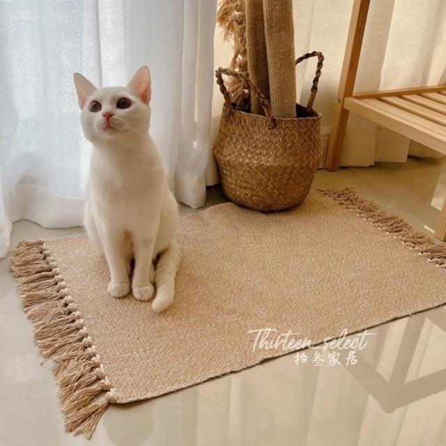 THiRTEEN 拾參家居日式亞麻原色平織地毯60x100cm日式棉麻 床邊腳踏墊 雙面地墊 浴室地墊 可機洗