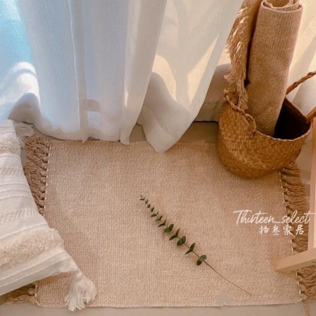 THiRTEEN 拾參家居日式亞麻原色平織地毯60x100cm日式棉麻 床邊腳踏墊 雙面地墊 浴室地墊 可機洗