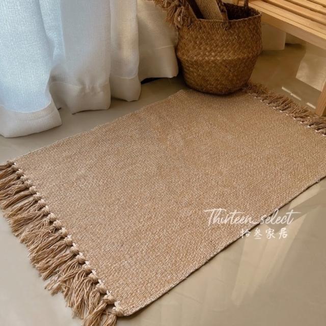 THiRTEEN 拾參家居日式亞麻原色平織地毯60x100cm日式棉麻 床邊腳踏墊 雙面地墊 浴室地墊 可機洗