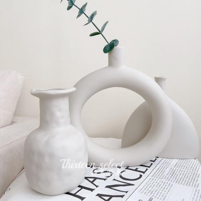 THiRTEEN 拾參家居侘寂風陶瓷花瓶擺件素胚花瓶 花器 不規則裝飾品 拍照道具 擺件