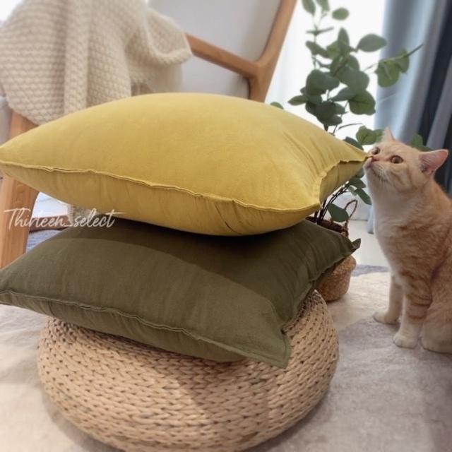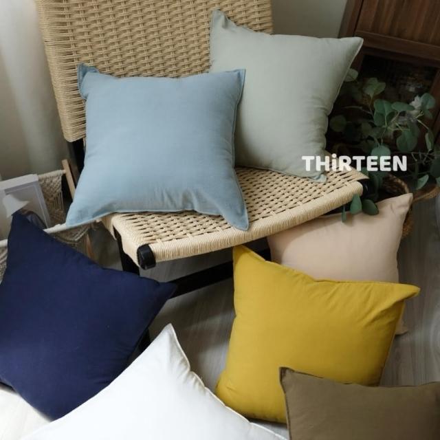 THiRTEEN 拾參家居森林系無印風壓邊純色抱枕(抱枕套 沙發靠枕 靠墊 枕頭套 無印風 水洗棉)