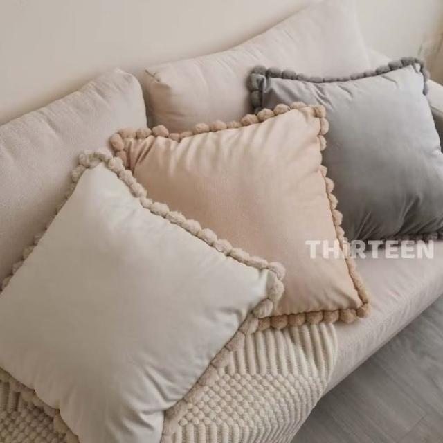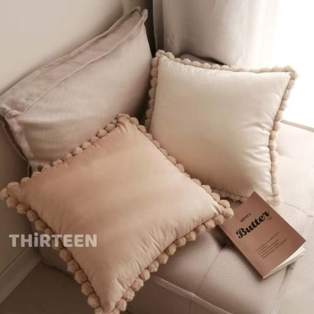 THiRTEEN 拾參家居珍珠絨球素色天鵝絨抱枕(靠墊 抱枕套 坐墊抱枕 北歐 居家裝飾 軟裝佈置 枕頭 枕頭套)