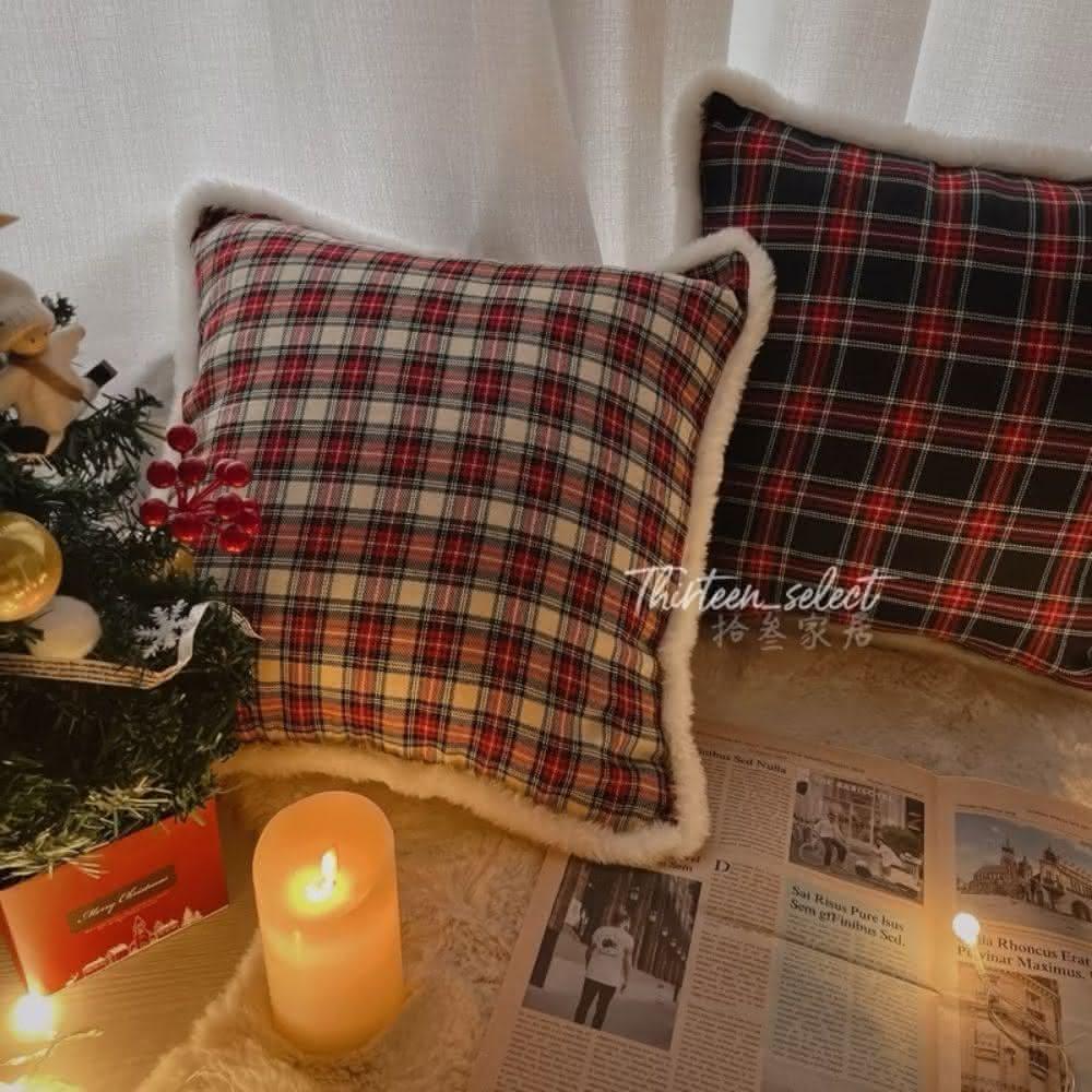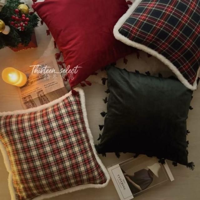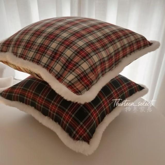 THiRTEEN 拾參家居耶誕復古格紋絨毛抱枕(交換禮物 聖誕節 枕頭 靠墊 抱枕套 坐墊抱枕 家居軟裝佈置 枕頭)