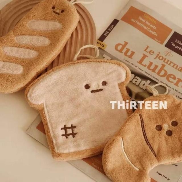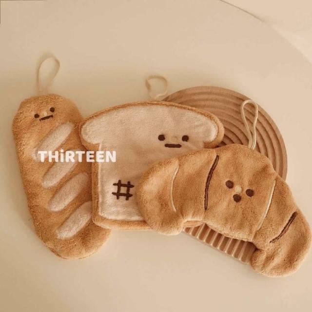 THiRTEEN 拾參家居可愛法國麵包擦手巾 法棍可頌吐司 可掛式擦手布 珊瑚絨吸水手巾 擦手 吸水毛巾