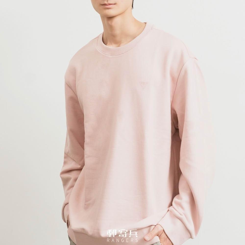 GUESS韓國 胸前立體倒三角 大學T 無刷毛 毛巾布 保暖長袖 上衣