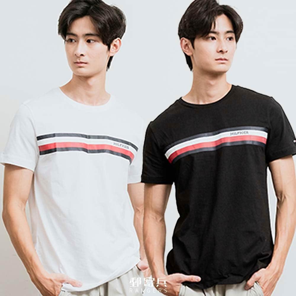 TOMMY HILFIGER紅白線條LOGO 短袖 上衣