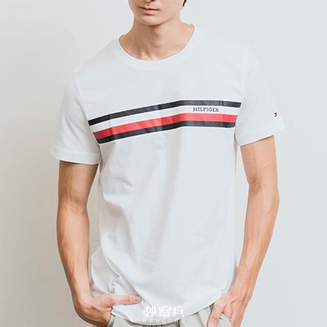 TOMMY HILFIGER紅白線條LOGO 短袖 上衣