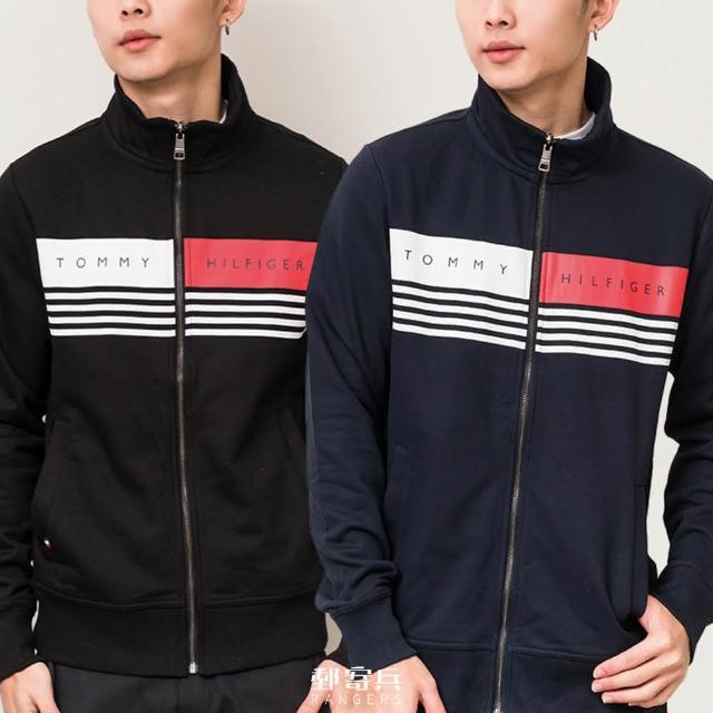 TOMMY HILFIGER線條紅白國旗LOGO 立領外套 毛巾布