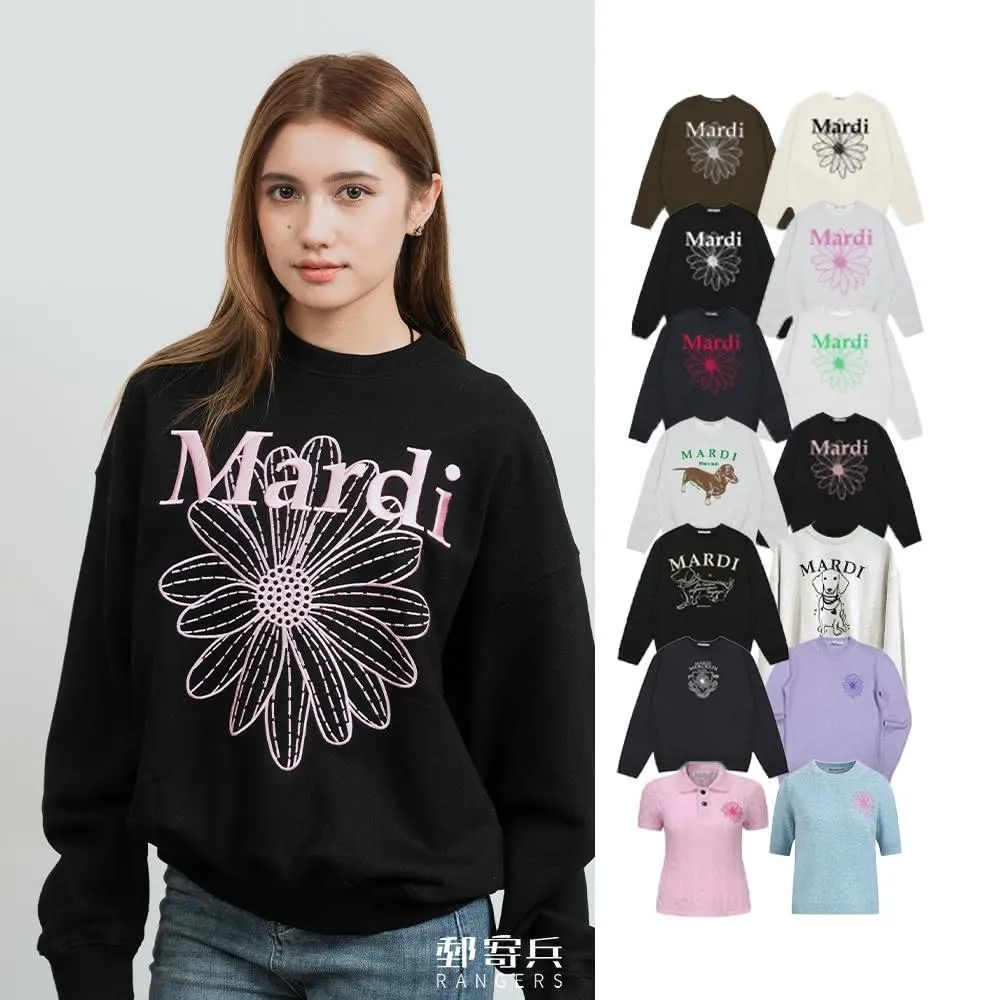 MARDI MERCREDI韓國 花花 臘腸狗 刺繡 毛衣 大學T 長袖 上衣