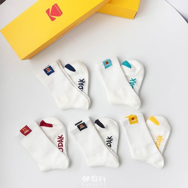 Kodak 柯達韓國 撞色小車標 文字 五入組 長襪 襪子 男生長襪 女生長襪
