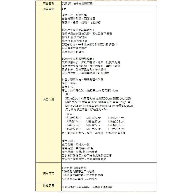 ShoesClub 鞋鞋俱樂部台灣製造10mm牛皮乳膠彈力鞋墊 1雙 906-C28 鞋材 (現貨+預購)