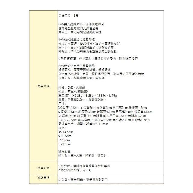 ShoesClub 鞋鞋俱樂部EVA硬式兒童足弓鞋墊 全墊 兒童鞋墊 1雙 906-C172 4種尺寸 鞋材 (現貨+預購)