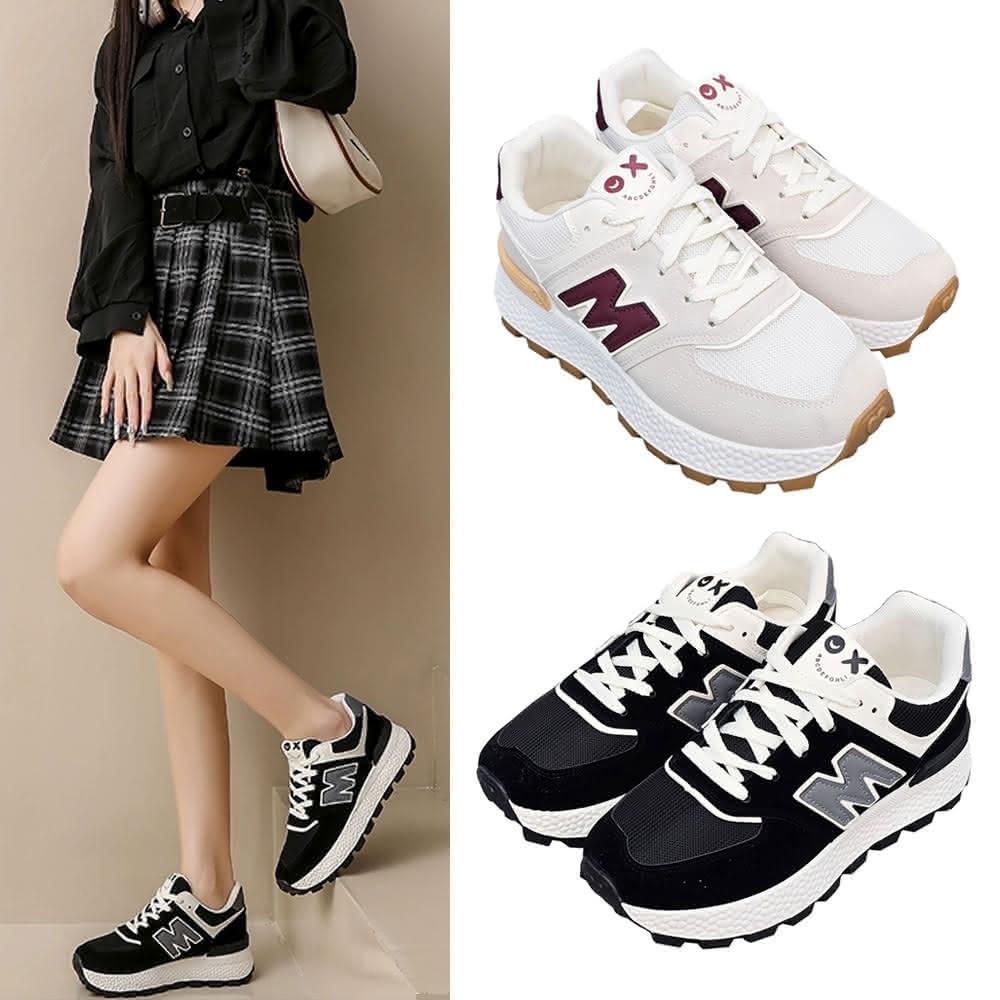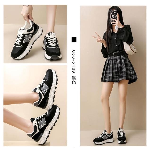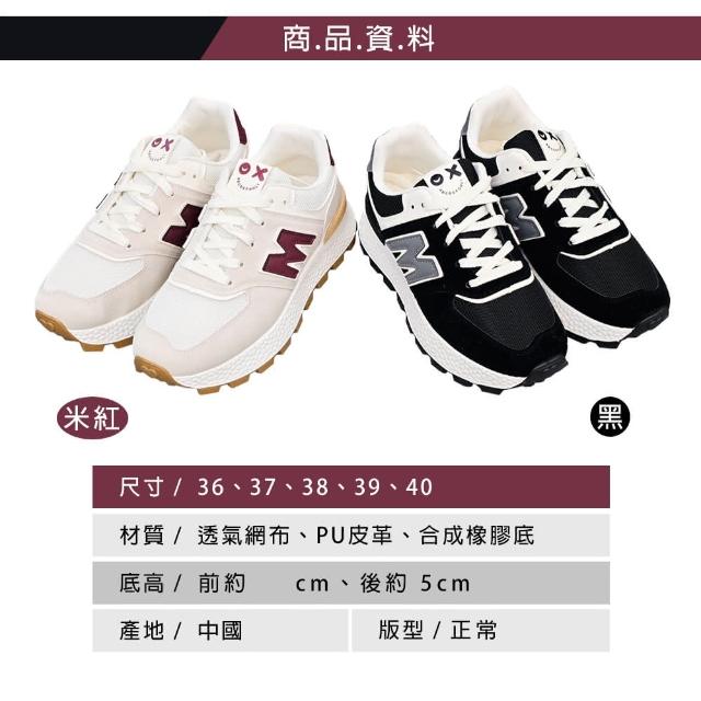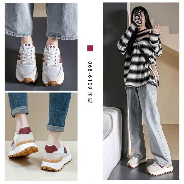 ShoesClub 鞋鞋俱樂部M字百搭透氣休閒運動鞋 女鞋 068-6109 米紅/黑 (現貨+預購)