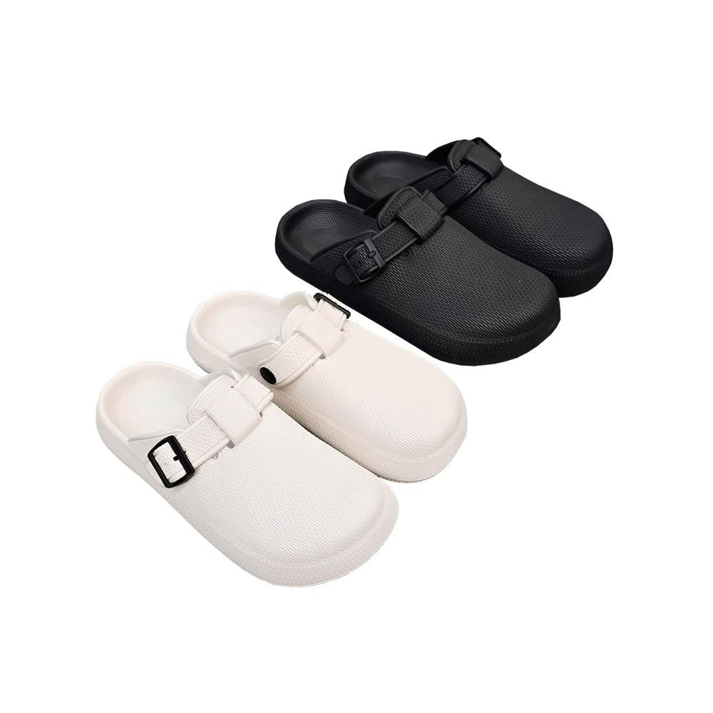 ShoesClub 鞋鞋俱樂部韓版厚底穆勒拖鞋 防水EVA材質一體成型懶人鞋 居家外出兩穿鞋 EVA防滑拖鞋 女鞋 黑/米 068-8860 (現貨+預購)