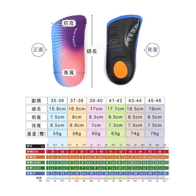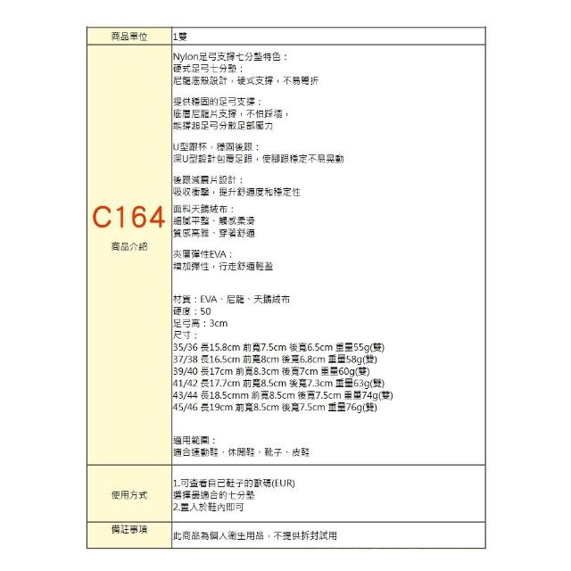 ShoesClub 鞋鞋俱樂部Nylon足弓支撐七分墊 硬式足弓七分鞋墊 906-C164 1雙 (現貨+預購)