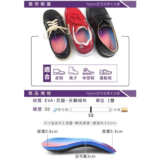 ShoesClub 鞋鞋俱樂部Nylon足弓支撐七分墊 硬式足弓七分鞋墊 906-C164 1雙 (現貨+預購)