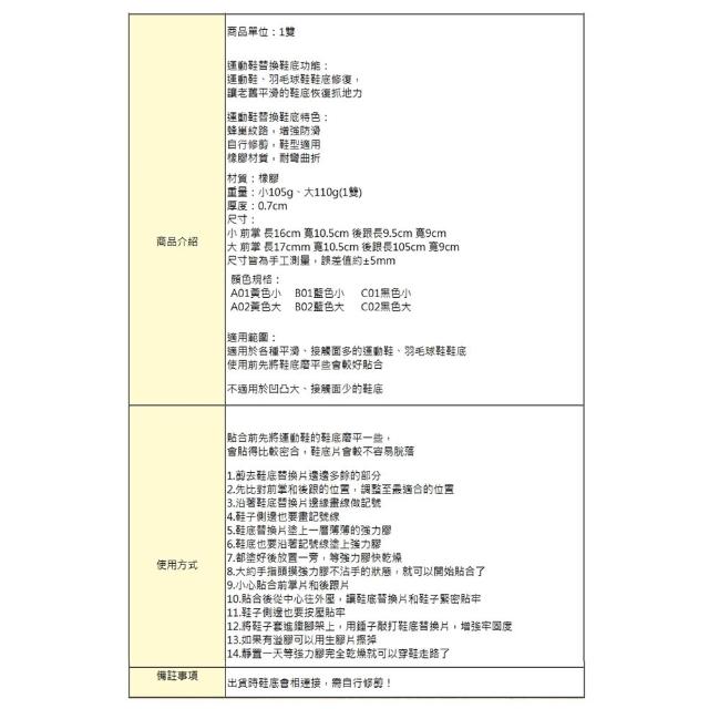 ShoesClub 鞋鞋俱樂部運動鞋替換鞋底 球鞋鞋底修復 906-N88 1雙 (現貨+預購)