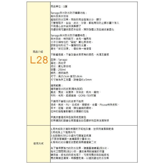 ShoesClub 鞋鞋俱樂部西班牙Tarrago奈米防水防汙噴霧250ml 1罐 906-L28 (現貨+預購)