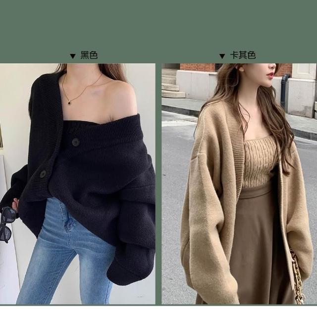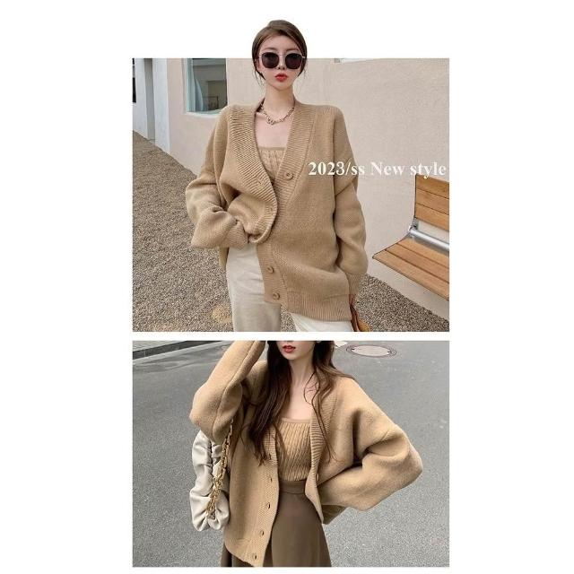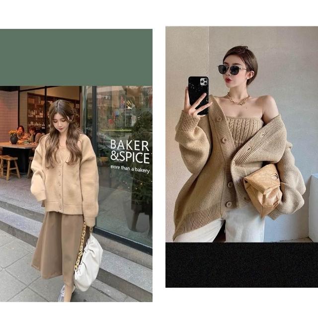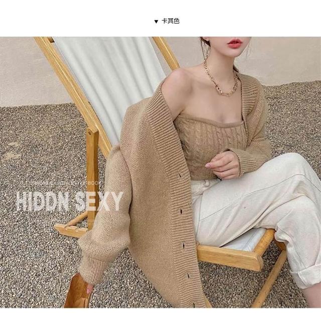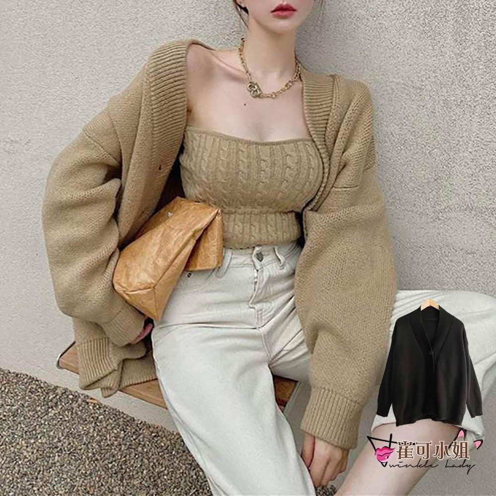 Twinkle Lady 崔可小姐復古溫柔 寬鬆 小性感 設計風 中長款 毛衣 背心+外套 兩件套 HG0057