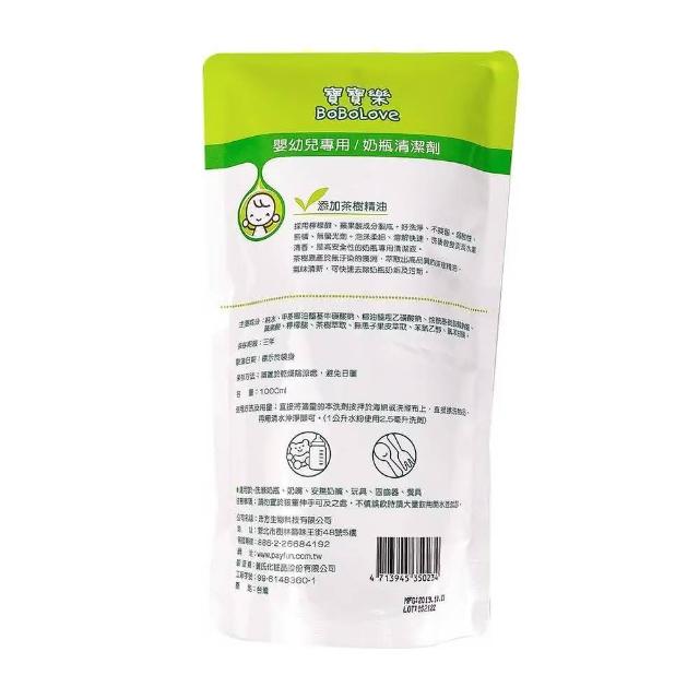 bobolove 寶寶樂 奶瓶清潔劑 嬰幼兒專用 天然有機 奶瓶 清潔 補充包 1000ml(奶瓶清潔劑 嬰幼兒專用)