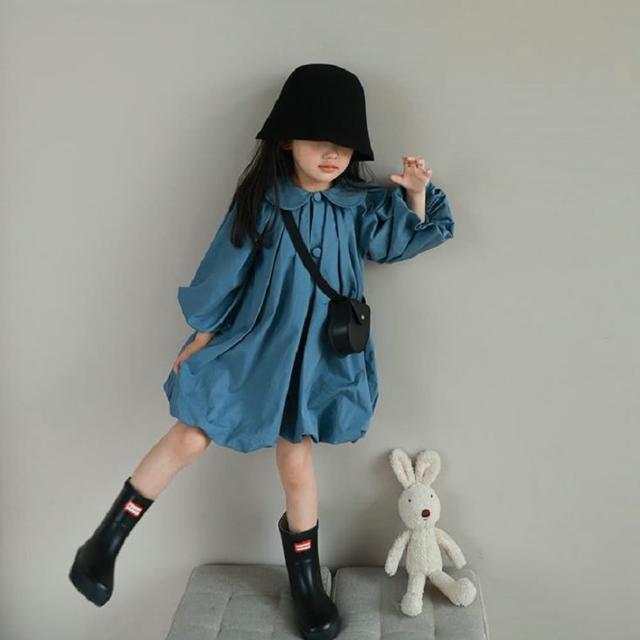 Arbea女童裙子娃娃領小清新長袖連衣裙C356(素色款)