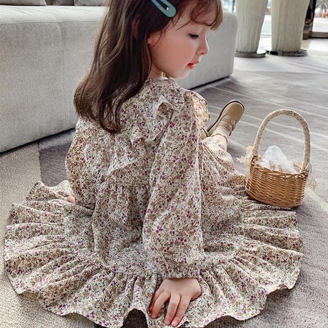 Arbea女童裙子碎花公主連身裙童裝C233(秋冬款)