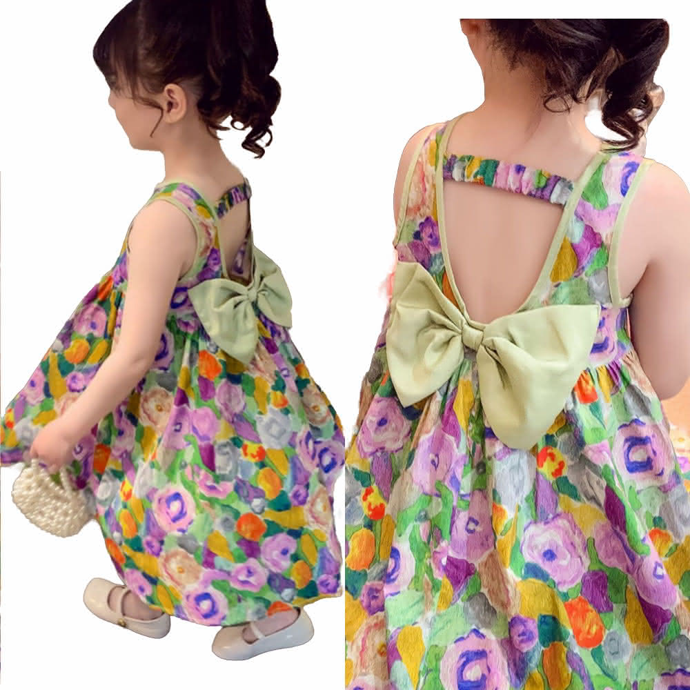 Arbea女童露背洋裝兒童碎花裙甜美蝴蝶結裙童裙C813(春夏款)
