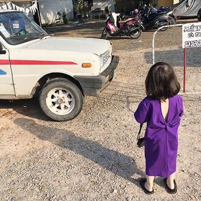 Arbea女童裙子蝴蝶結開叉連衣裙衛衣裙裝 C18