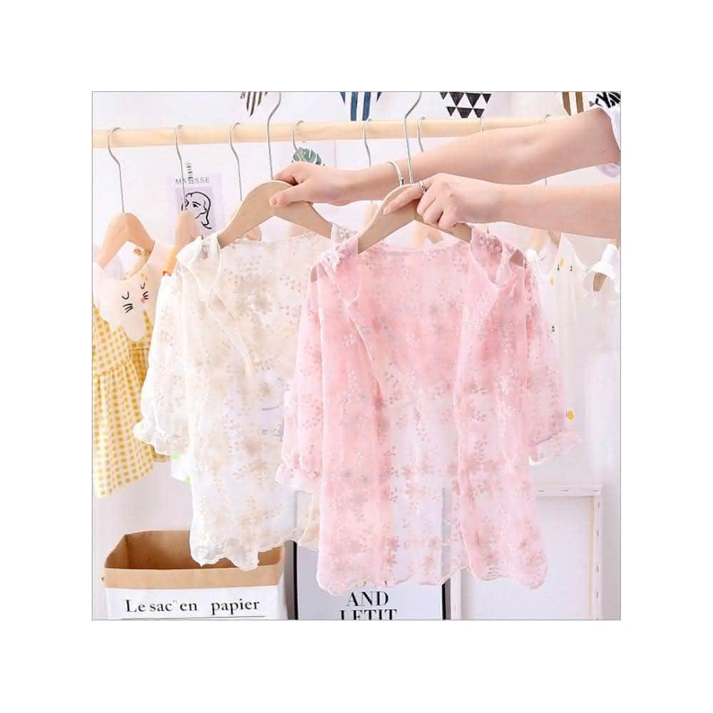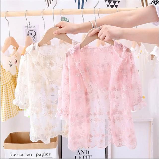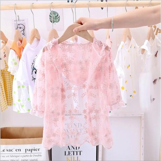 Arbea女童披風長款夏裝洋氣兒童皮膚衣薄款空調衫外套童裝網紗 C602
