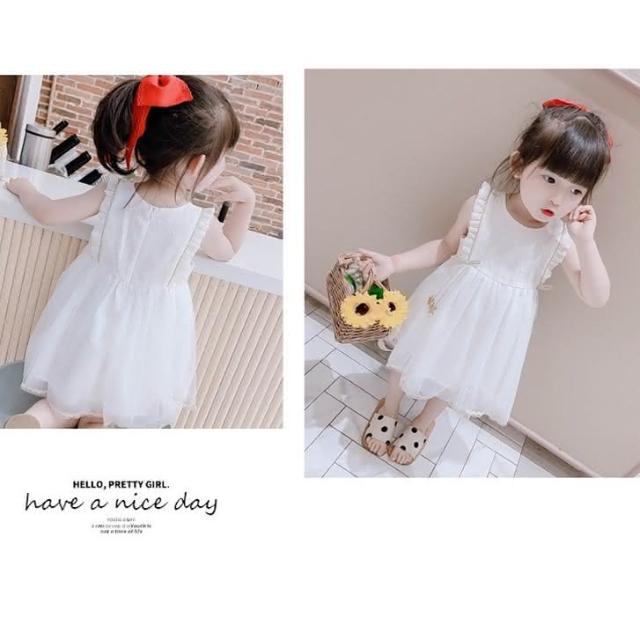 Arbea女童連衣裙夏季新款洋氣短袖白色紗裙女孩裙子兒童夏裝公主裙童裝 C145
