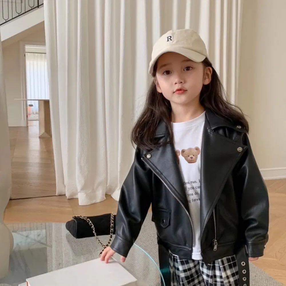 女童皮衣秋裝新款兒童洋氣韓版機車服裙子春秋款夾克上衣 C309