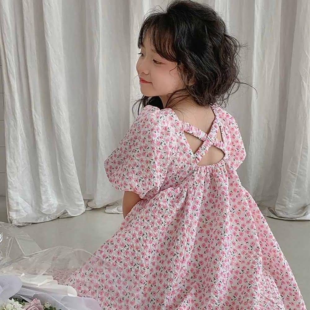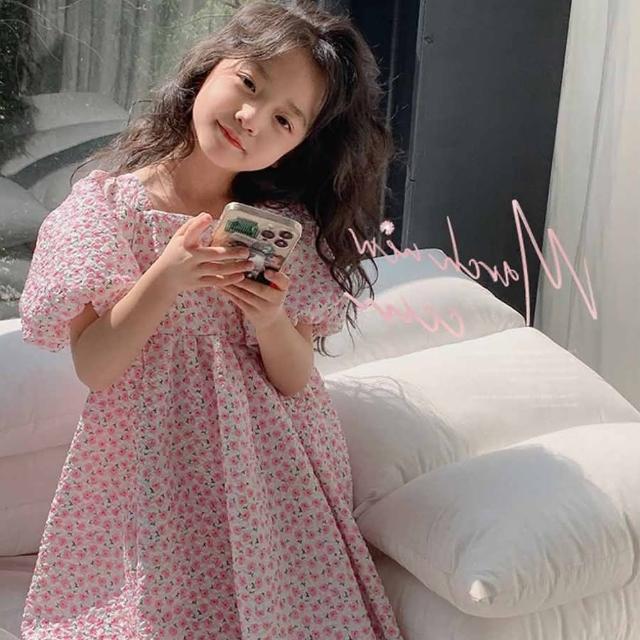 Arbea女童泡泡袖洋裝夏季新款女寶寶洋氣小碎花公主裙中小童 C958