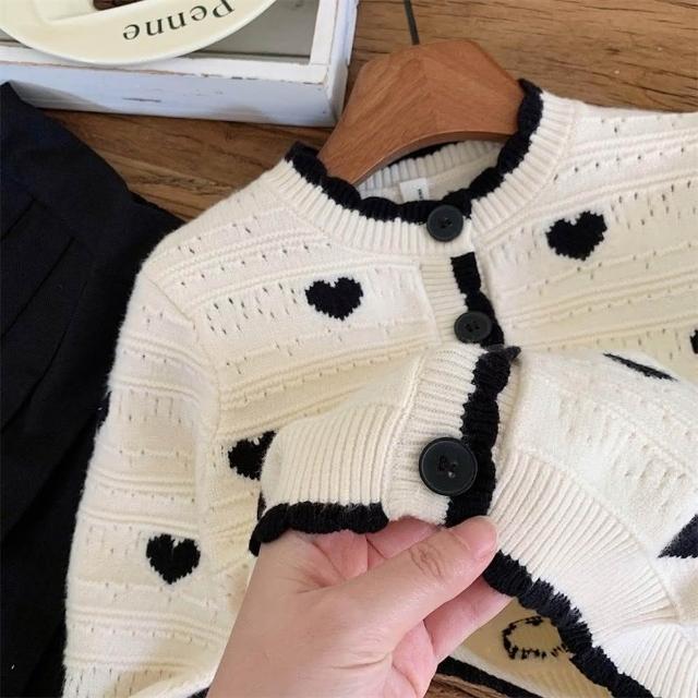Arbea女童愛心毛衣開襟春秋中小兒童韓版針織衫寶寶洋氣外套 C709