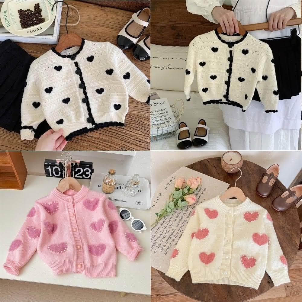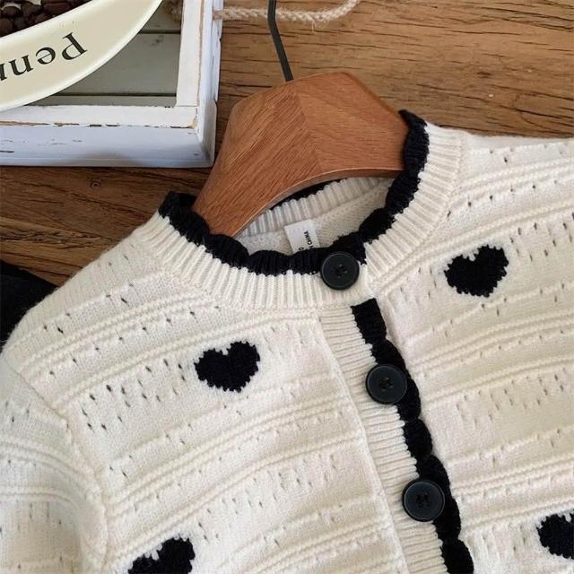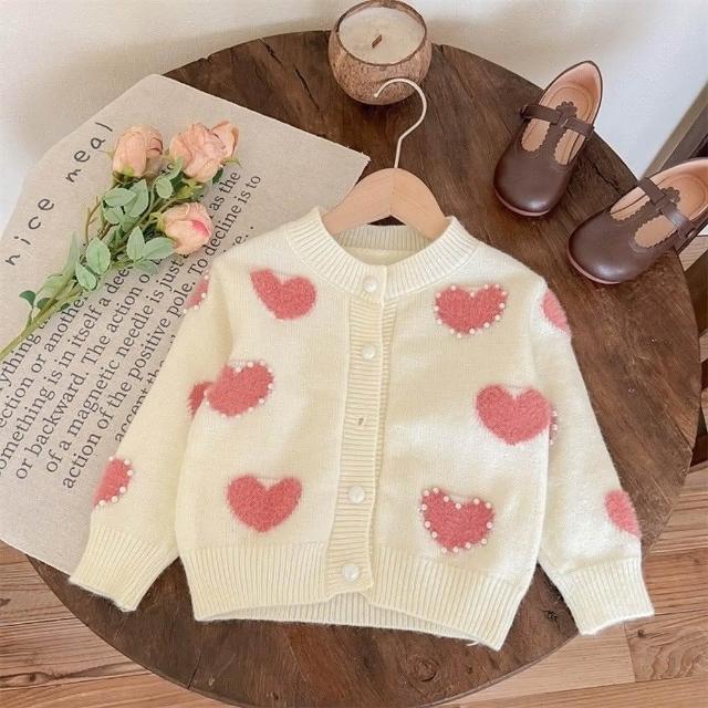 Arbea女童愛心毛衣開襟春秋中小兒童韓版針織衫寶寶洋氣外套 C709